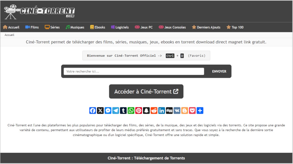 Type: Site non communautaire | Tracker: Public | Inscription: Non | Coût: Gratuit | Langue: Français | Protection Anti-Hadopi : VPN