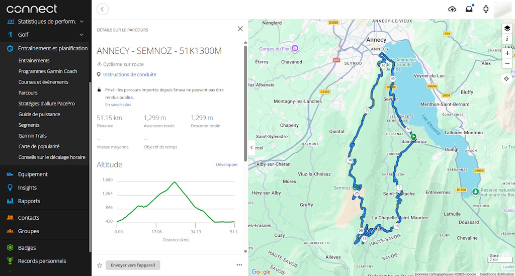 Ce compteur n’est pas qu’un outil de navigation : c’est aussi un vrai coach numérique. Grâce à la synchronisation avec l’application Garmin Connect, j’analyse ensuite :