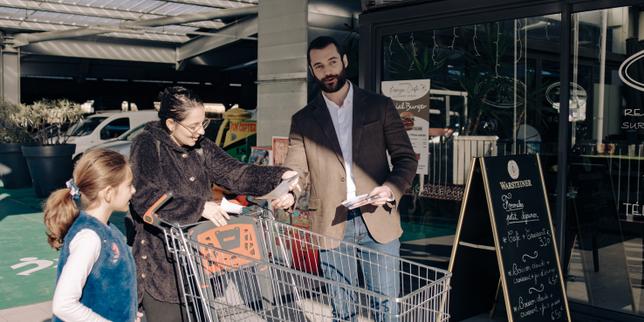 Louis Sarkozy, candidat à la mairie de Menton (Alpes-Maritimes), tracte son programme pour les municipales, le 13 décembre 2025.