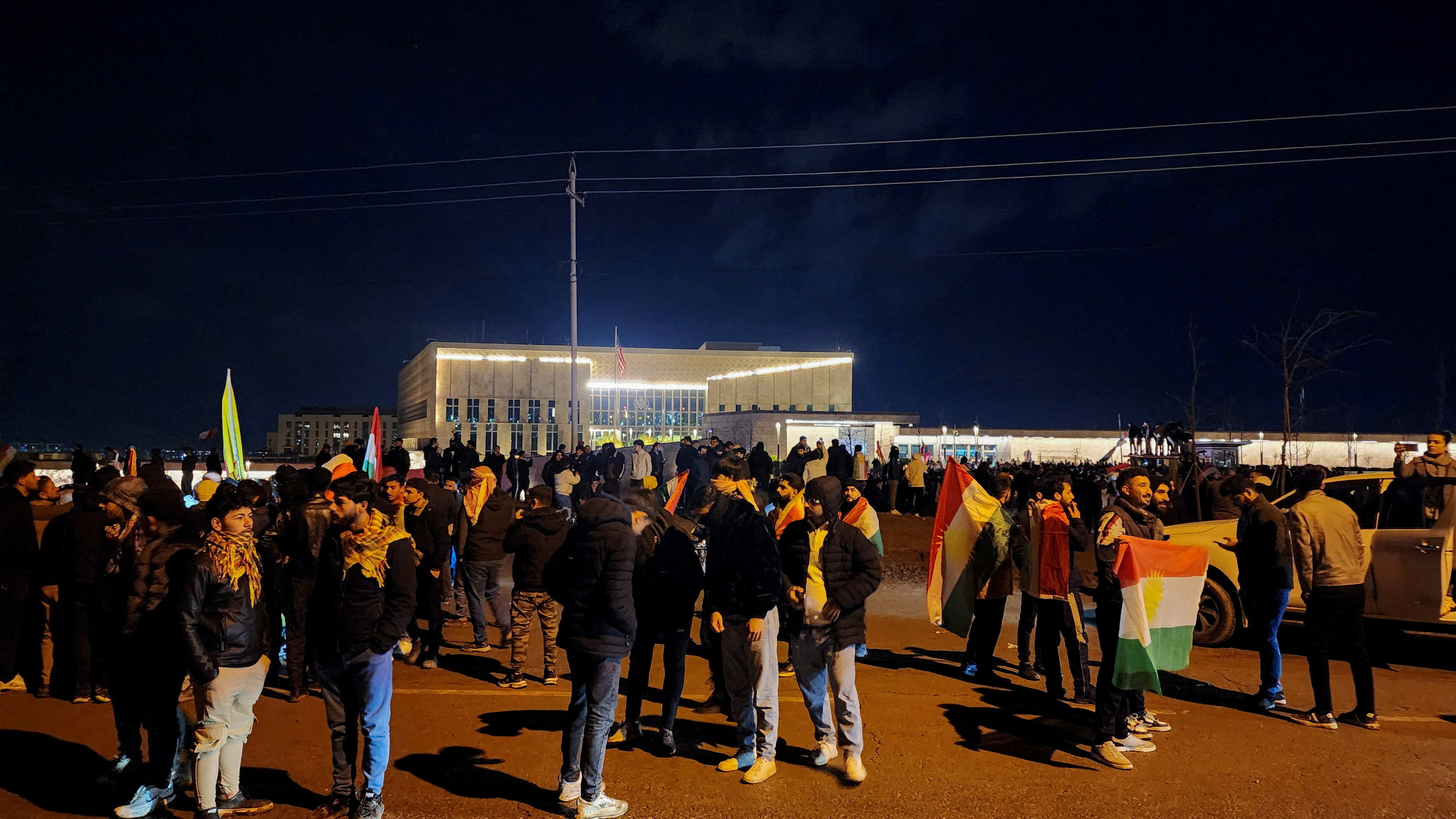 Des pro-kurdes manifestent devant le consulat général des États-Unis, en soutien à Rojava, la région autonome kurde dans le Nord de la Syrie, le 20 janvier 2026.