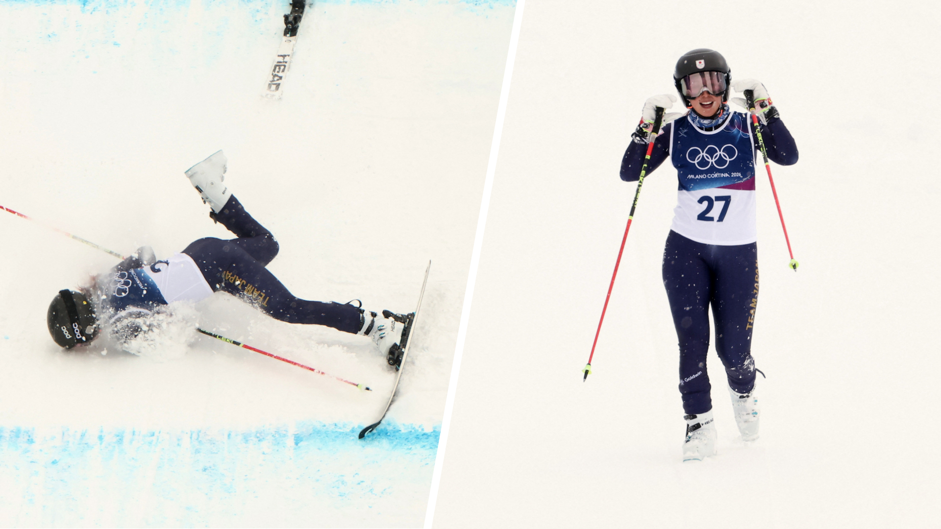 LE SCAN SPORT - Makiko Arai est partie à la faute dans le final du ski-cross mais a signé l’une des images de la journée en terminant le parcours à pied.