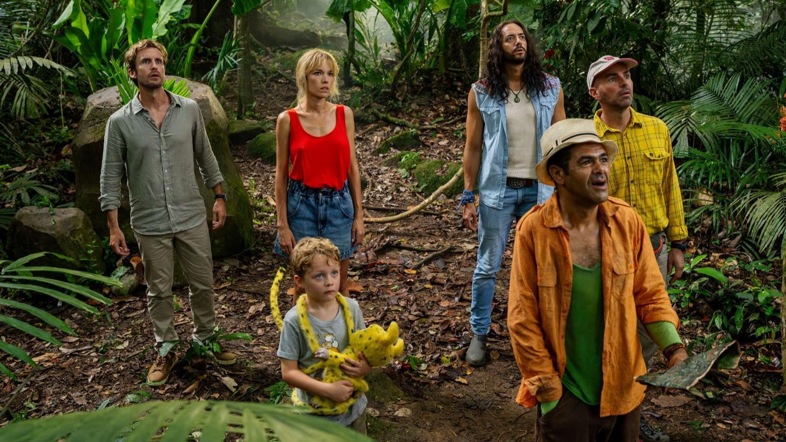 Philippe Lacheau, Tarek Boudali, Corentin Guillot, Élodie Fontan, Jamel Debbouze et Julien Arruti dans Marsupilami, en salles depuis le 4 février.
