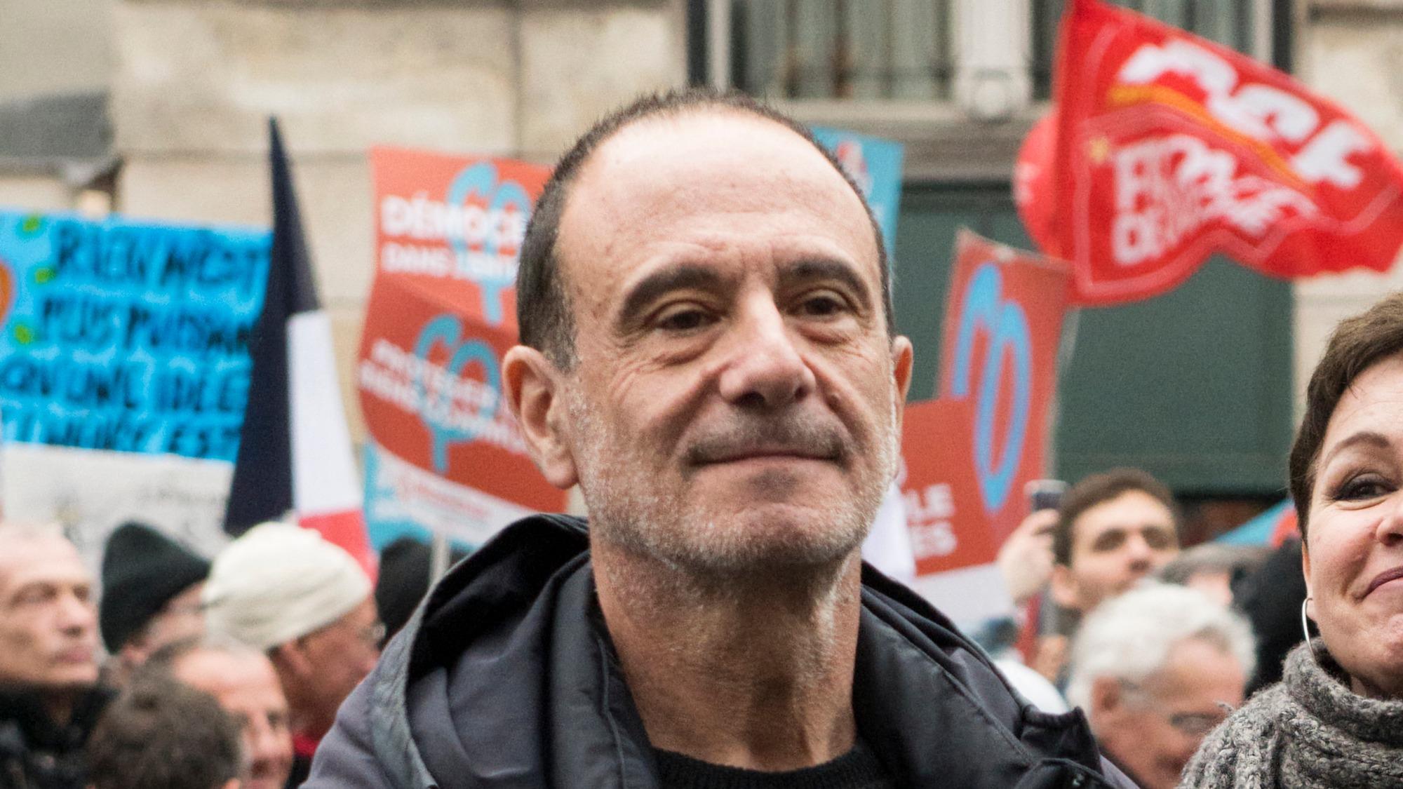Gérard Miller, figure médiatique de la gauche, aux côtés de la France Insoumise lors d’une manifestation à Paris le 18 mars 2017.