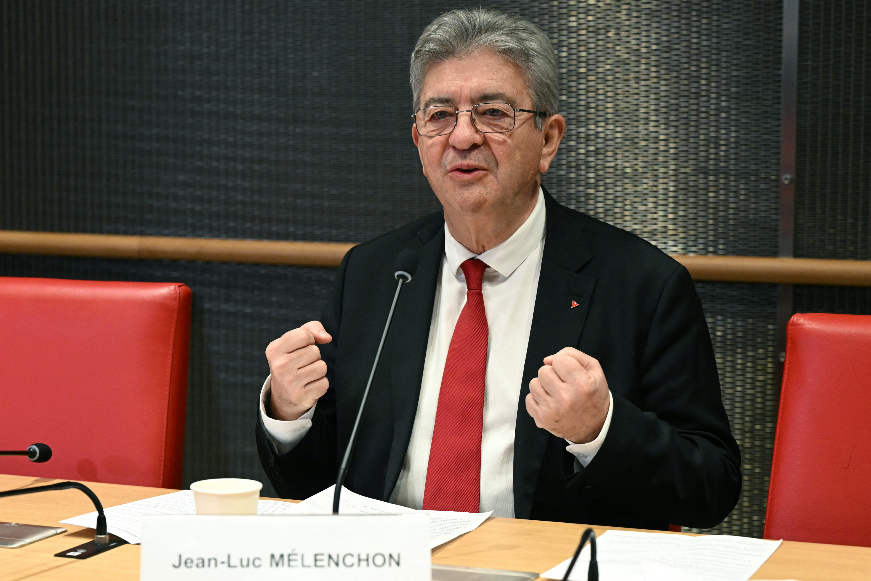 Jean-Luc Mélenchon devant la commission d’enquête parlementaire sur des liens supposés entre mouvements politiques et réseaux islamistes, ce samedi 6 décembre.