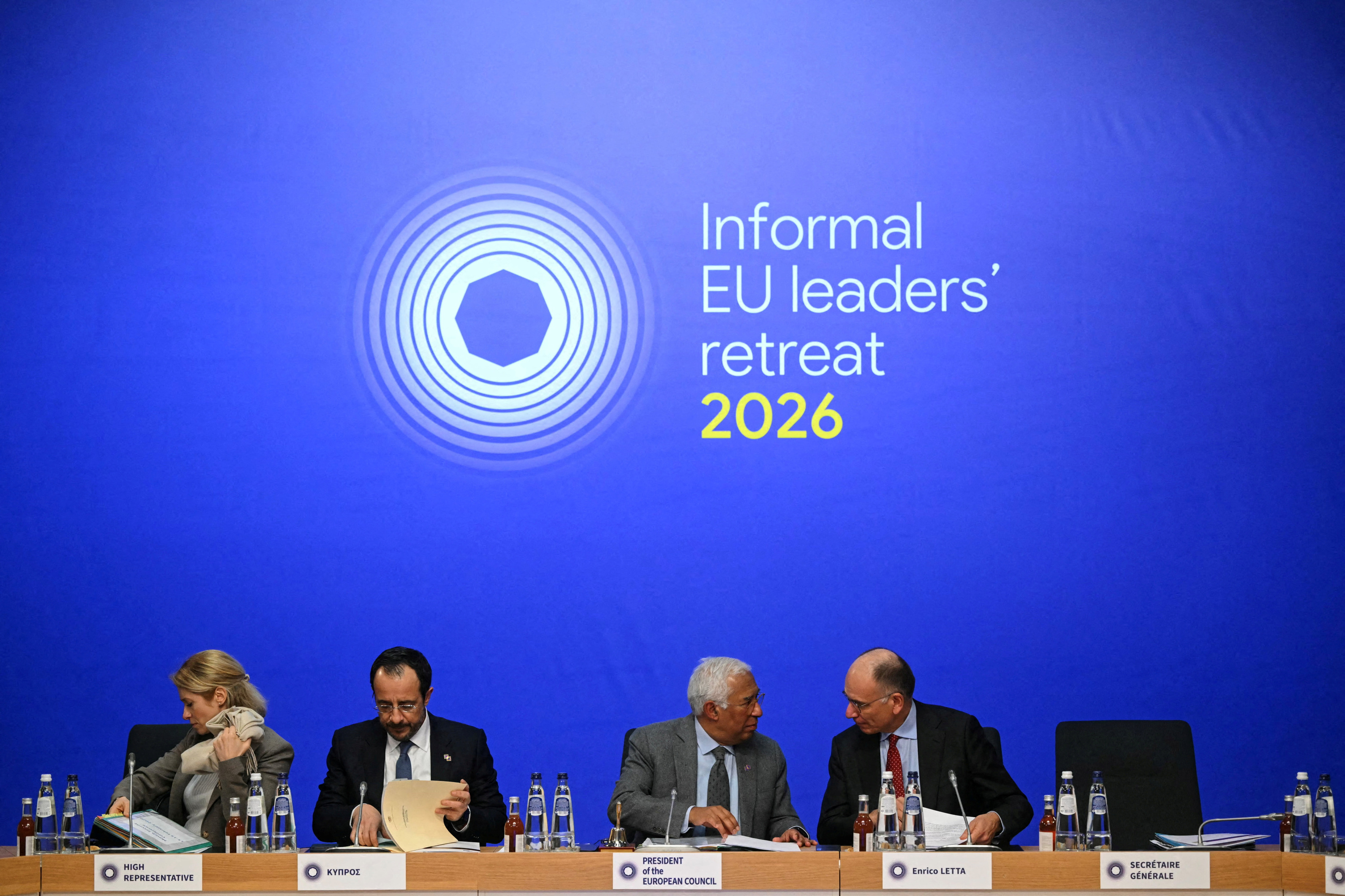 La représentante de l’Union européenne pour les affaires étrangères et la politique de sécurité et vice-présidente de la Commission européenne Kaja Kallas, avec président de Chypre Nikos Christodoulides, le 12 février 2026.