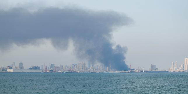 Le ciel de Manama (Bahreïn) suite à une attaque aérienne, le 28 février 2026.
