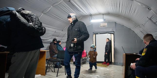 L’une des tentes dans lesquelles les habitants de Kiev peuvent se réchauffer, installées à la suite des attaques russes contre les infrastructures énergétiques, le 13 janvier 2026.