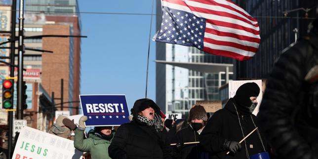 Un rassemblement pour dénoncer le déploiement d’agents de l’ICE par le président américain Donald Trump, à Minneapolis (Minnesota, Etats-Unis), le 23 janvier 2026.