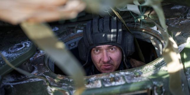 Un soldat des forces armées ukrainiennes attend une mission depuis un char, à proximité de la ligne de front, dans l’oblast de Donetsk (Ukraine), le 26 janvier 2026.
