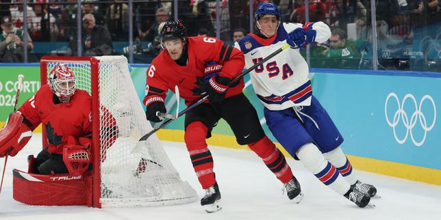 Les Canadiens à la fin de la demi-finale du tournoi de hockey sur glace masculin face à la Finlande aux Jeux olympiques d’hiver de Milan-Cortina, le 20 février 2026.