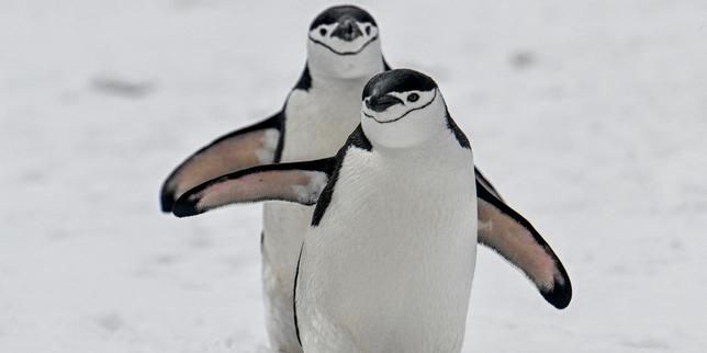 Des manchots à jugulaire (Pygoscelis antarcticus) photographiés sur l’île de la Déception, dans l’ouest de la péninsule antarctique, le 24 janvier 2024.