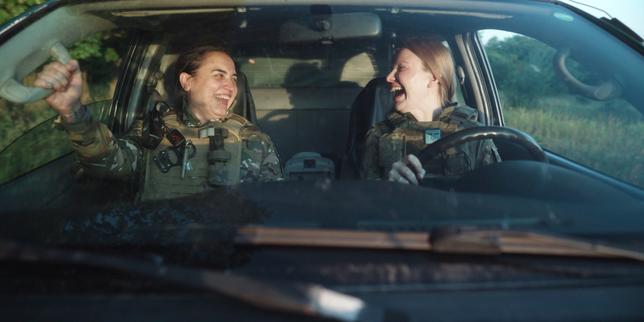 Alice Cordier (à gauche), présidente de Némésis, lors de la marche en hommage au militant d’extrême droite Quentin Deranque, à Lyon, le 21 février 2026.