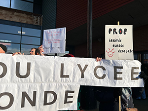Sous l’égide d’une intersyndicale (CFDT, SNES-FSU et UNSA), cette mobilisation a exprimé son mécontentement suite à plusieurs mois d’absence de dialogue avec la Direction portée par le Proviseur, Christophe Courdent.