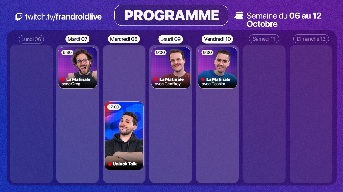 Rejoignez-nous de 17 à 19h, un mercredi sur deux, pour l’émission UNLOCK produite par Frandroid et Numerama ! Actus tech, interviews, astuces et analyses… On se retrouve en direct sur Twitch ou en rediffusion sur YouTube !